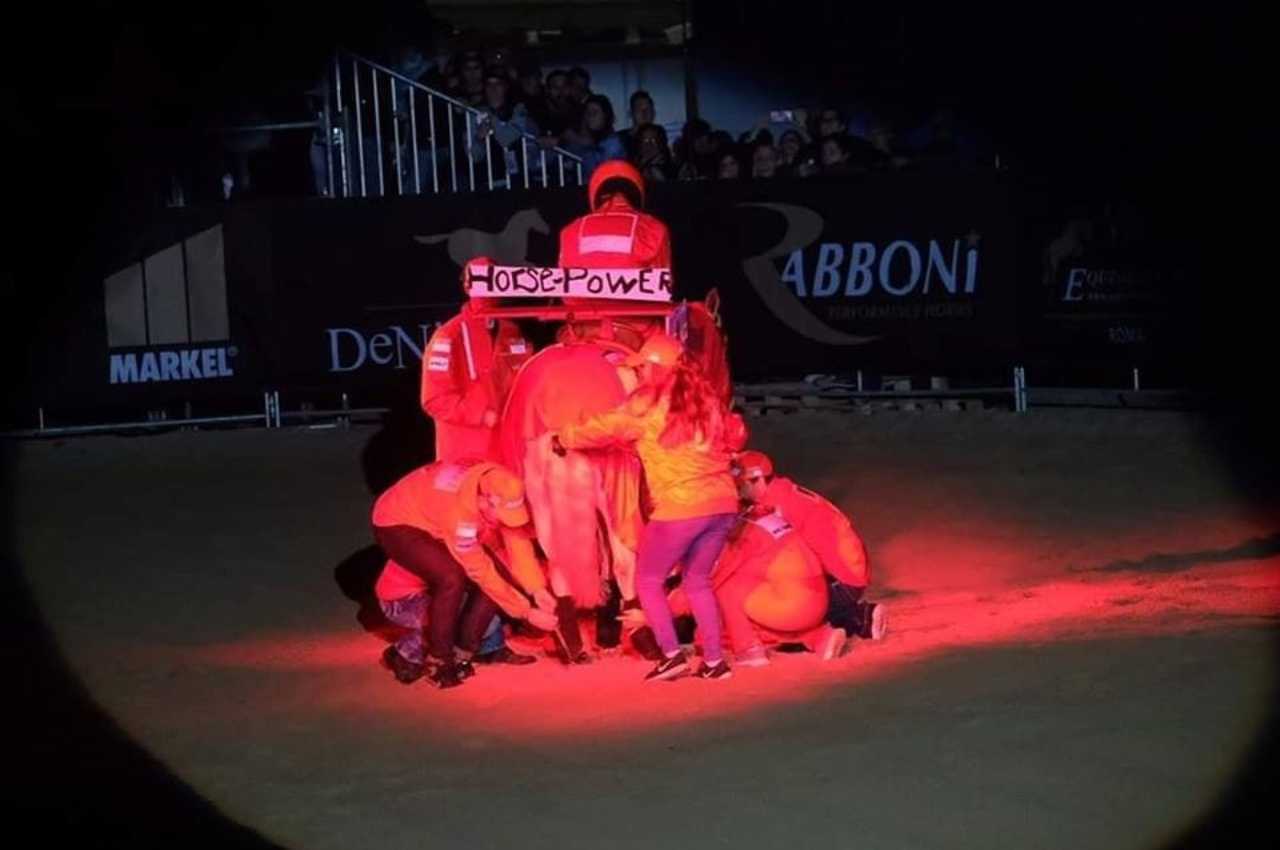 Durante la consueta esibizione, la campionessa di reining ha anche organizzato un pit-stop, tipico della Formula 1, con ben 8 meccanici a procedere al “cambio gomme“. Alla fine, Gina è scesa dal suo cavallo per festeggiare la vittoria, momento che ha permesso di simulare la classica celebrazione con lo champagne. La scelta di presentarsi durante la manifestazione non è affatto casuale dato che la prova Freestyle è una gara dove gli atleti competono ‘in costume’ e a tempo di musica.