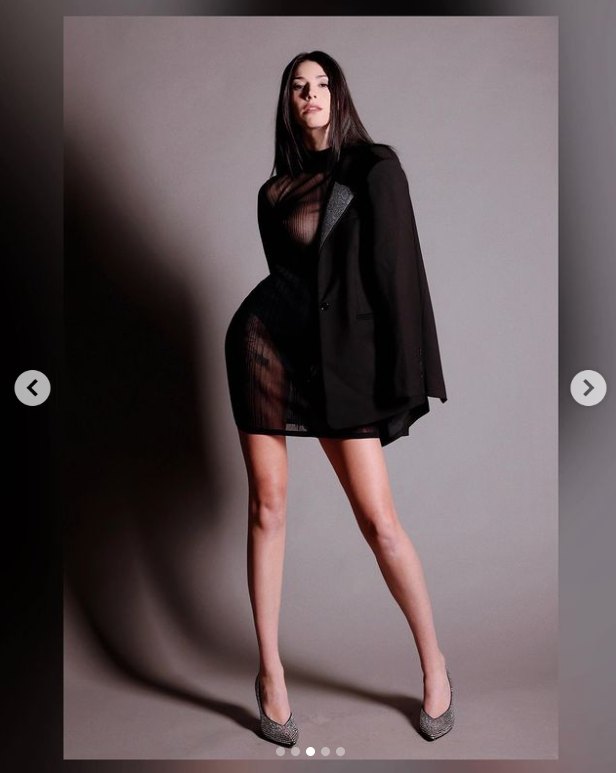 Indossando solamente un vestitino ricco di righe e completamente trasparente, si è potuto ammirare tutto il suo corpo favoloso. Il Lato A era facilmente visibile, anche perché non portava nemmeno il reggiseno, e si è mostrata con ben cinque scatti in ogni posizione.